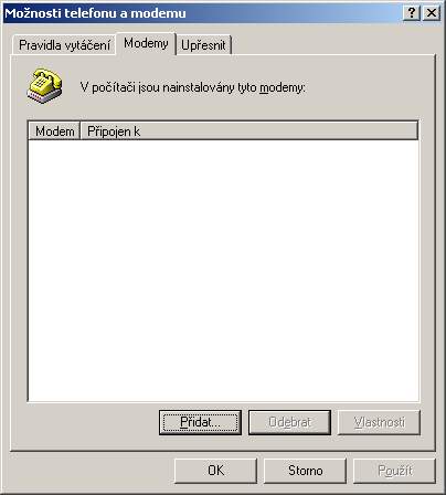 internetu (www.my-siemens.com). 2. Na CD se nachází soubor S45Modem.inf (pro S55 stáhněte z internetu právě tento typ!) 3. Zvolte Start - Nastavení - Ovládací panely - Možnosti telefonu a modemu. Pro přidání modemu stiskněte tlačítko Přidat.