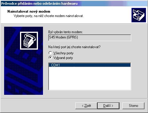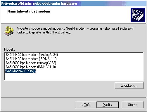 7. V následujícím okně vyberte daný typ modemu, v daném případe S45 Modem (GPRS), a klikněte na Další.