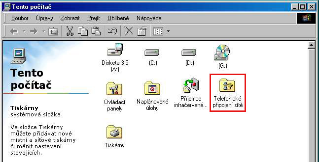 2. V tomto okně klikněte na ikonu Telefonické připojení sítě