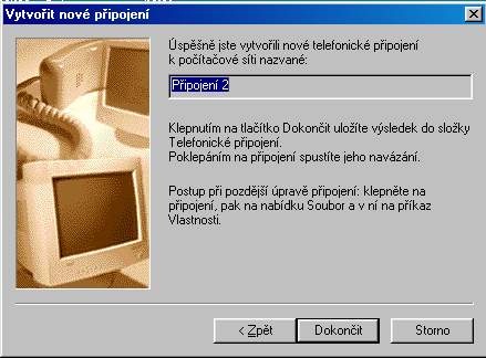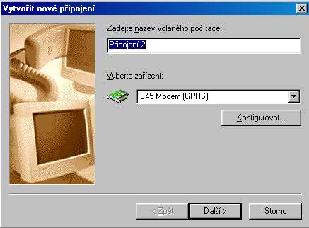 4. V tomto okně zadejte název (libovolný) telefonického připojení a
