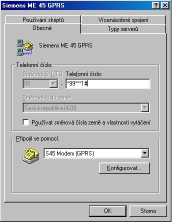 Nastavení vlastností GPRS připojení pro S/ME45, S55 |