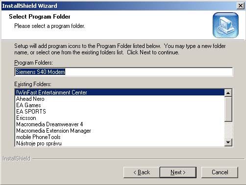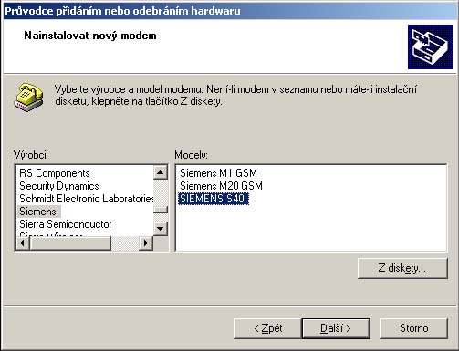 Siemens) spusťte program s40_modem_setup.exe a postupujte