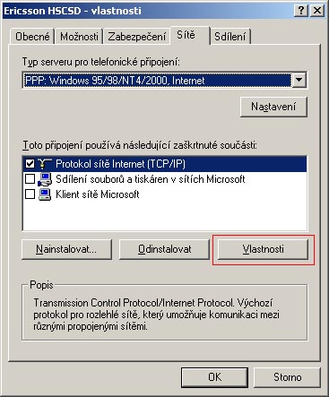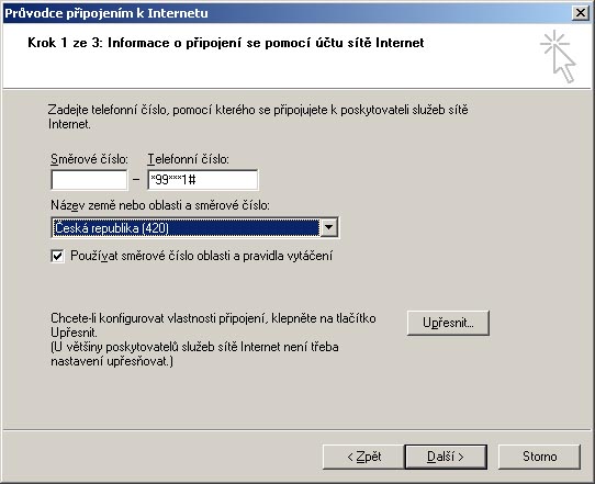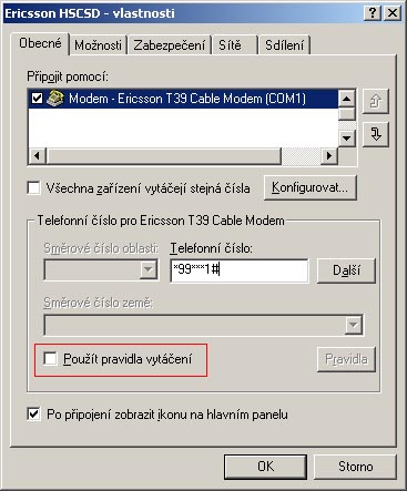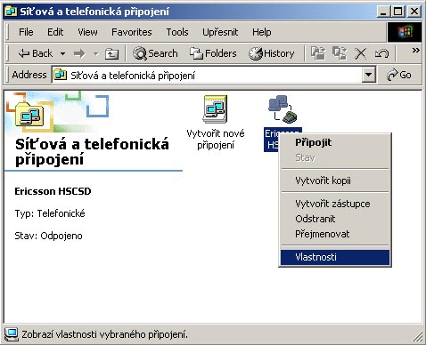 Vytvoření telefonického připojení pro SonyEricsson ve Windows 2000/XP přes GPRS |