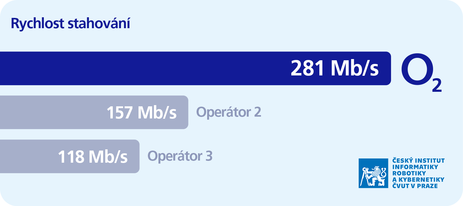 „V oblastech pokrytých signálem 5G jsme u všech operátorů provedli opakované srovnávací měření pomocí aplikace Speedtest. Nejvyšší rychlost při download byla naměřena v síti O₂, a to 932 Mbit/s. Přitom loni to bylo 636 Mbit/s. Pokud bychom letošní hodnotu srovnali v rámci všech tří operátorů, pak jsou maximální naměřené rychlosti zhruba dvojnásobné oproti konkurenci. Tam jsme se v maximu rychlosti stahování pohybovali na hodnotách 593, respektive 391 Mbit/s.“