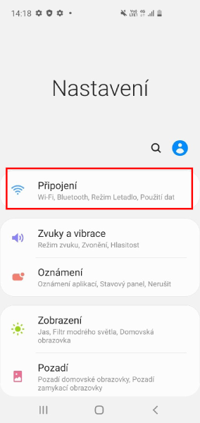 1. V nastavení svého telefonu zvolte možnost Připojení.