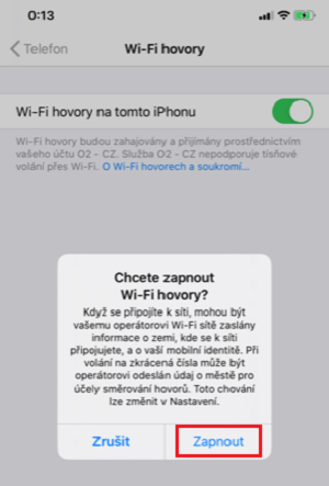 Wi‑Fi volání je dostupné jen na území ČR a nepodporuje volání přes Wi‑Fi v leteckém módu.
