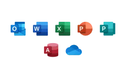 - Outlook, Word, Excel, PowerPoint, OneNote (Acces, Publisher), hostovanou mailovou schránkou s 50GB nebo neomezenou kapacitou.