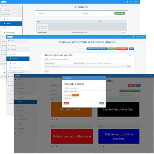 Vybraný krizový scénář spustíte přes počítač, tablet i mobil, pomocí SMS/e‑mailu nebo SOS tlačítkem na pracovišti. Systém lze aktivovat i automaticky třeba na základě dat z požárních senzorů.
