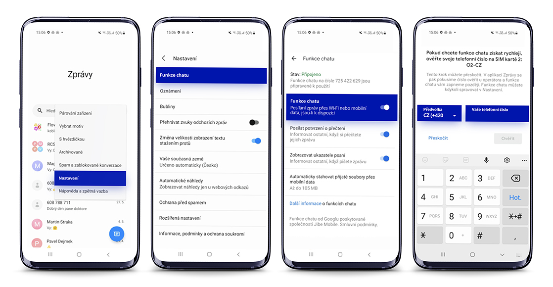 RCS Chat je funkce dostupná u aplikace Zprávy od společnosti Google LLC nebo Samsung Electronics Co., Ltd. Jde o aplikace, kam koncovému uživateli chodí SMS nebo MMS.