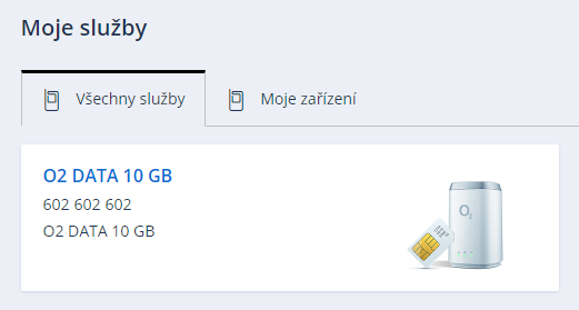 V sekci "Moje služby" klikněte na dlaždici služby, u které chcete stav čerpání zjistit. V našem názorném příkladu klikneme na O2 data.