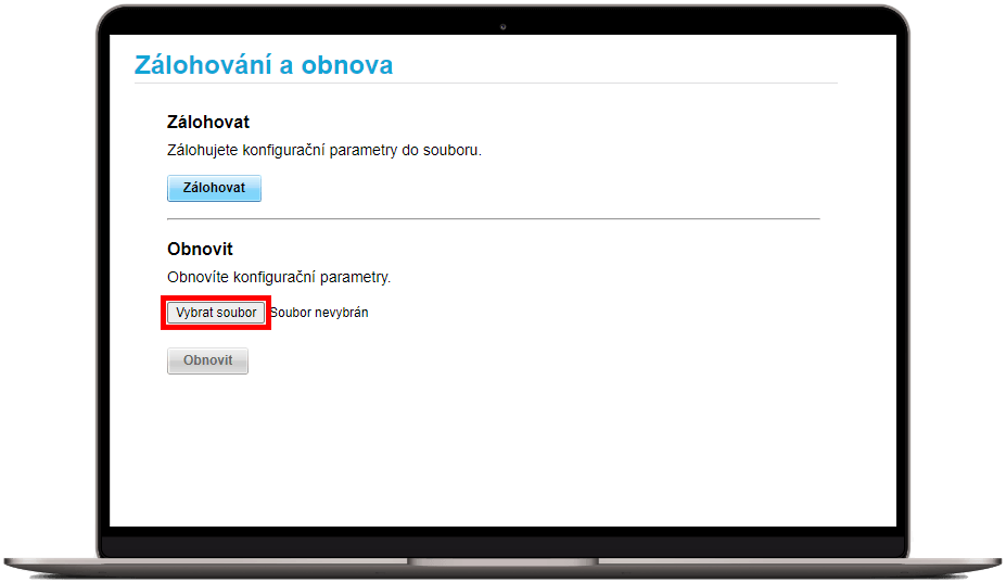 Zálohou uživatelských nastavení modemu si uložíte vlastní název Wi‑Fi sítě a hesla, případně vlastní IP adresy a další nastavení. Využijete ji, když třeba budete chtít obnovit tovární nastavení modemu nebo aktualizovat firmware. Pokud jste v minulosti zálohu uživatelských nastavení provedli, můžete je obnovit podle následujícího postupu: