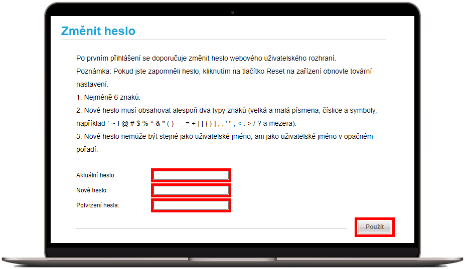 Wi‑Fi síť si můžete sami přejmenovat a nastavit k ní vlastní heslo. Změna názvu a hesla je vhodná například po prvním zprovoznění Wi‑Fi sítě. Lépe ji tak ochráníte před zásahem cizí osoby.