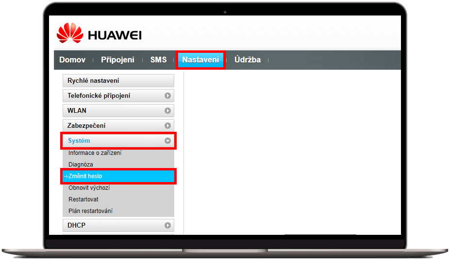 Z výroby má modem Huawei nastavené přístupové heslo na hodnotu „admin“. Přístupové heslo si můžete sami změnit, ochráníte tak nastavení svého modemu před cizím zásahem.