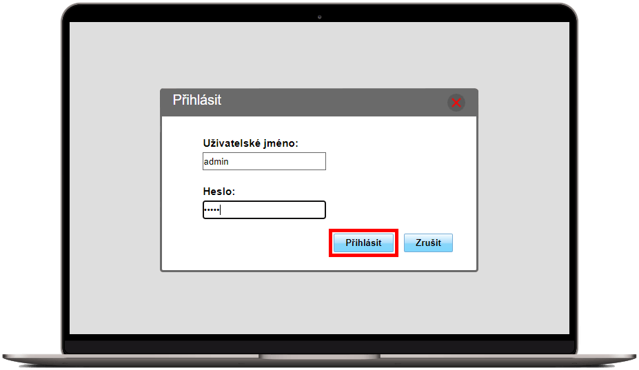 TIP: Pokud jste přístupové heslo v minulosti měnili a už si ho nepamatujete, obnovte modem do továrního nastavení (návod naleznete níže). Heslo „admin“ začne opět platit.