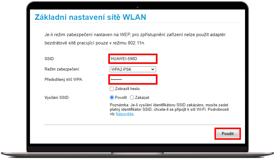 Wi-Fi síť si můžete sami přejmenovat a nastavit k ní vlastní heslo. Změna názvu a hesla je vhodná například po prvním zprovoznění Wi-Fi sítě. Lépe ji tak ochráníte před zásahem cizí osoby.