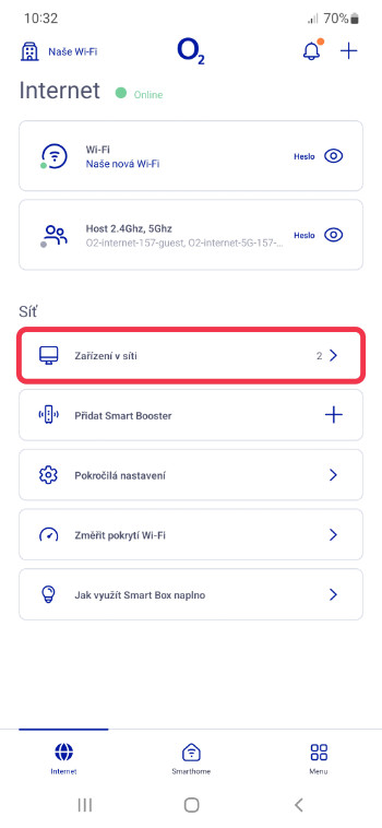 Historie připojení– seznam všech zařízení, která byla k O2 Smart Boxu připojena