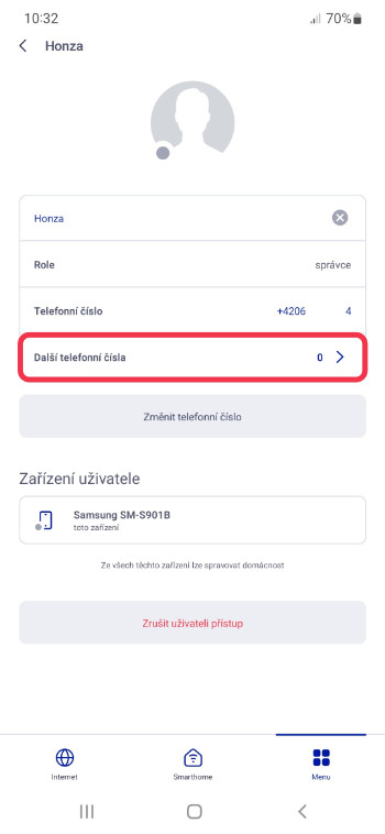 Potřebujete, aby O2 Smart Box posílal upozornění (např. SMS o napadení domova či firmy) na další mobilní telefony?