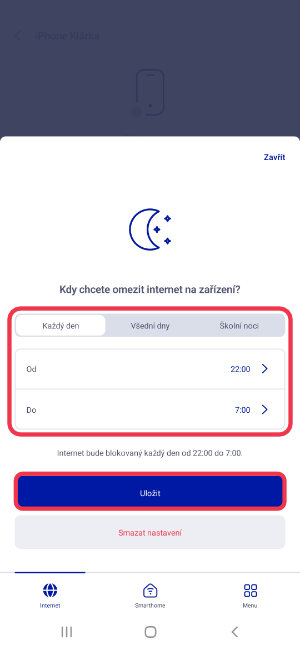 Mějte kontrolu nad tím, kdy se vaše děti připojují k internetu. Stačí nastavit časy, ve kterých nebude internet dostupný na vybraných telefonech, počítačích, tabletech nebo dalších zařízeních.