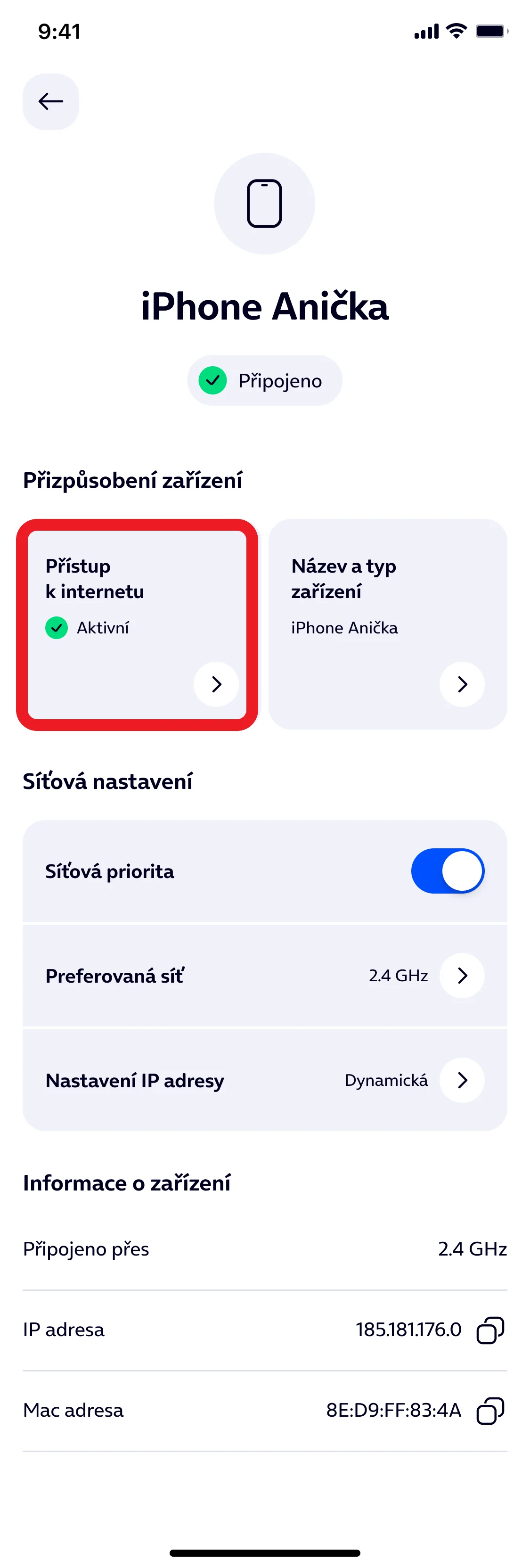 • Blokovaný – vybrané zařízení má úplně zakázaný přístup k internetu a nemůže se k němu vůbec připojit.