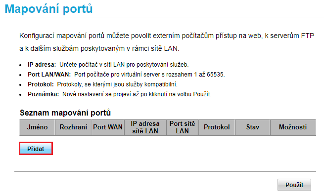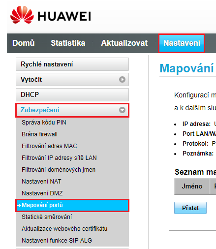 Nastavení směrování portů na modemu ZyXel O2 GateWay