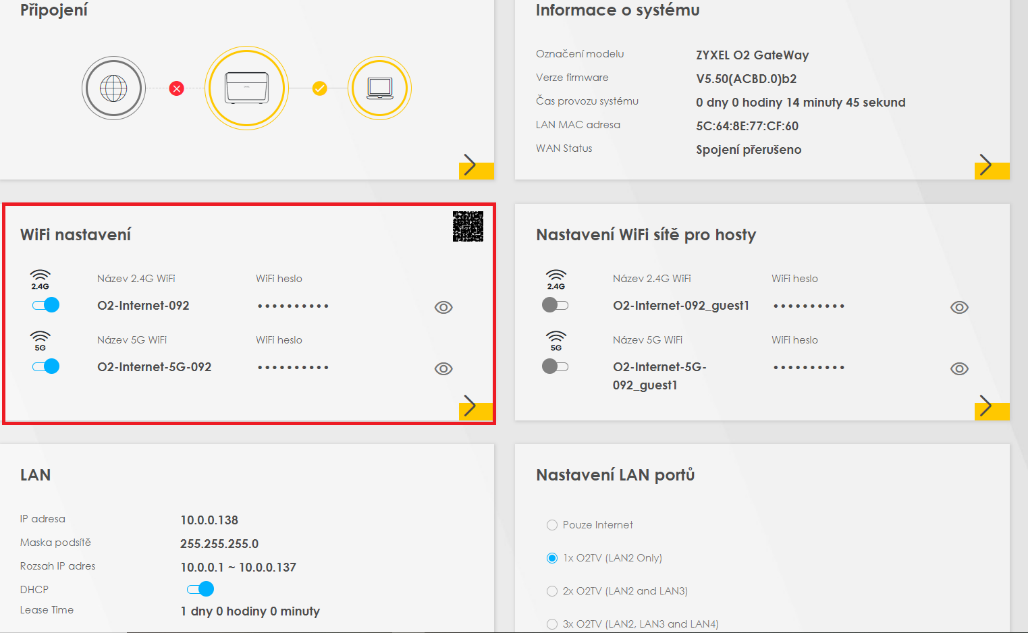 LAN porty modemu od O2 jsou z výroby nastavené: LAN1, LAN3, LAN4 pro internet a LAN2 pro O2 TV.