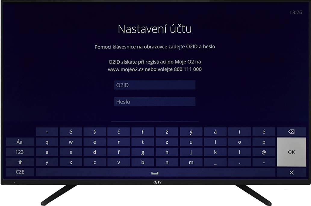 Při prvotním spuštění O2 TV zadejte přihlašovací jméno (O2 ID) a heslo. Přihlašovací údaje jsou stejné jako pro přihlášení do Moje O2. Nepamatujete si přihlašovací údaje k Moje O2?