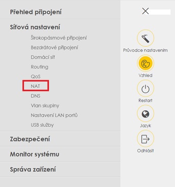 Nastavení směrování portů na modemuZyXel O2 GateWay