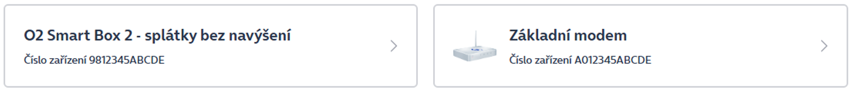 Pokud zařízení objednal přihlášený uživatel zákaznického účtu, najdete v Moje O₂ po přihlášení dlaždici se zařízením: