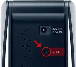 2. Na zadní straně O2 Smart Boxu 2 najděte otvor s nápisem „Reset”. Do otvoru ,,Reset” vsuňte úzký předmět (kancelářská sponka, sirka apod.) a zatlačte na něj, dokud neucítíte cvaknutí. Držte 15 sekund.