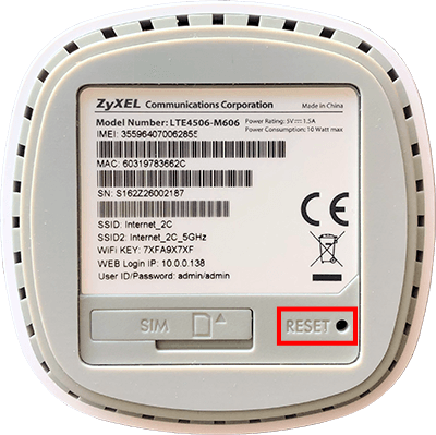 Otvor s nápisem „Reset“ najdete na spodní straně modemu.