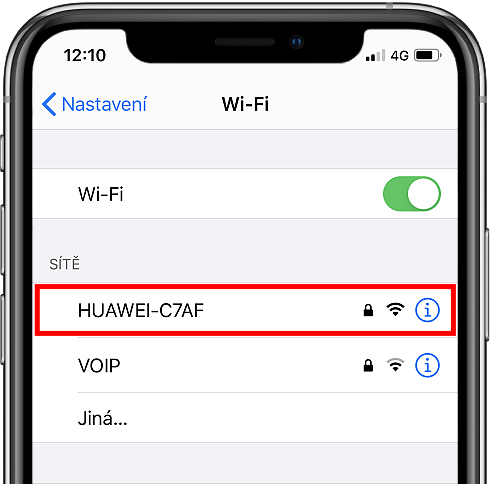 Na telefonu vyhledejte dostupné bezdrátové sítě.
