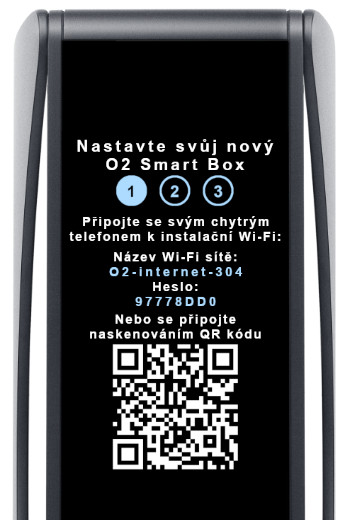 Po aktualizaci O2 Smart Boxu 2 se vám zobrazí název a heslo dočasné Wi‑Fi sítě sloužící jen pro nastavení