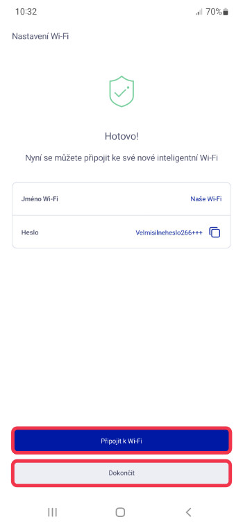 Úspěšně jste dokončili nastavení vašeho O2 Smart Boxu. Tlačítkem „Dokončit“ se dostanete na hlavní stránku Vašeho O2 Smart Boxu nebo se připojte k jeho Wi-Fi pomocí tlačítka „Připojit k Wi-Fi“.