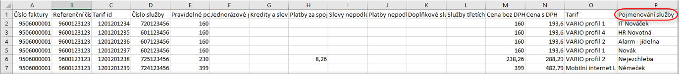 Sloupcový výpis dat za všechny služby najdete v souboru „201901-all-l.csv“. Seznam všech fakturovaných služeb je ve sloupci „D“.