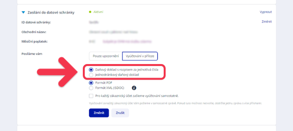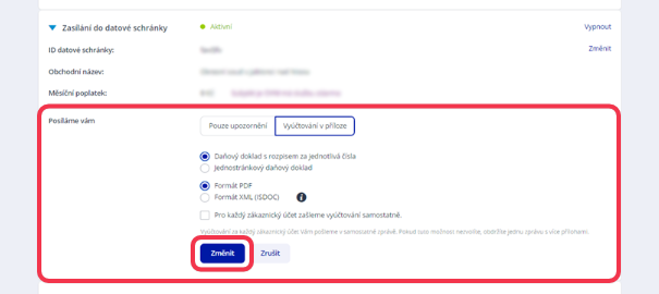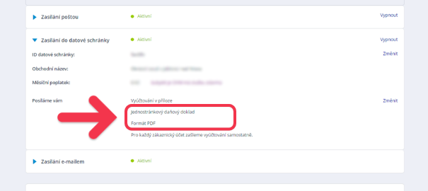 Jakmile si vyberete, jak chcete vyúčtování dostávat, můžete si nastavit i to, v jakém bude formátu: