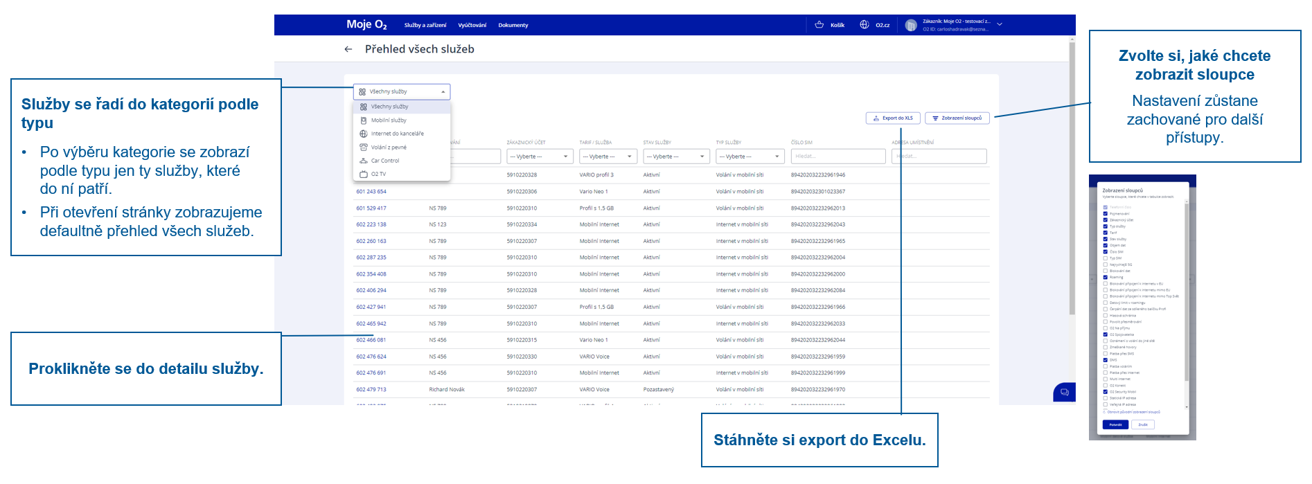 Vaše vlastní pojmenování produktů se nově propisuje i do CSV exportu vyúčtování. Přidali jsme ho do úplně posledního sloupce souboru. Díky tomu máte v Moje O2 jednotný identifikátor napříč základním menu, vyúčtováním i XLS a CSV exporty.