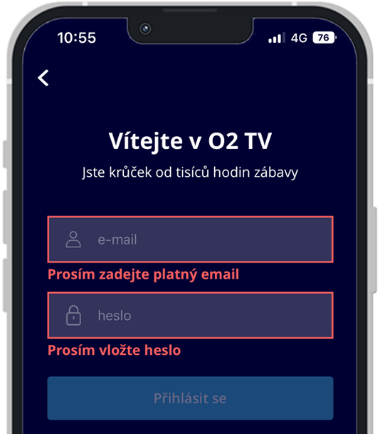 Přihlaste se pomocí O2 ID (vaše e-mailová adresa) a hesla. Přihlašovací údaje jsou stejné jako pro přihlášení do Moje O2. Jejich správnost snadno ověříte, když se s nimi zkusíte přihlásit do Moje O2 .