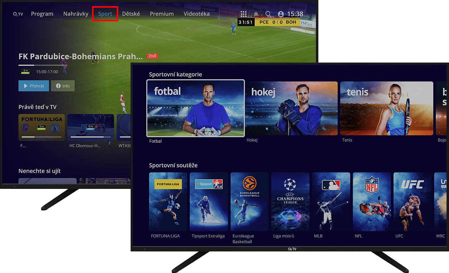 V sekci Sport najdete spoustu sportovních přenosů rozdělených podle kategorií a soutěží.