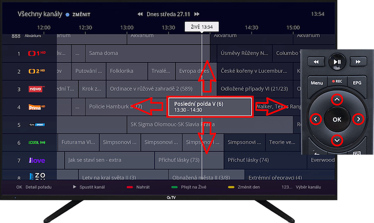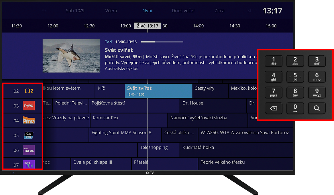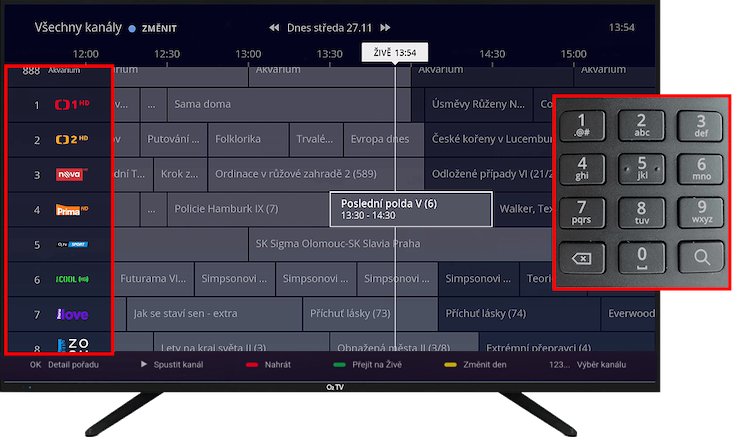 Volbou „číslic“ na dálkovém ovladači přepínáte na konkrétní číslo kanálu a nemusíte listovat programem pomocí šipek nahoru a dolů.