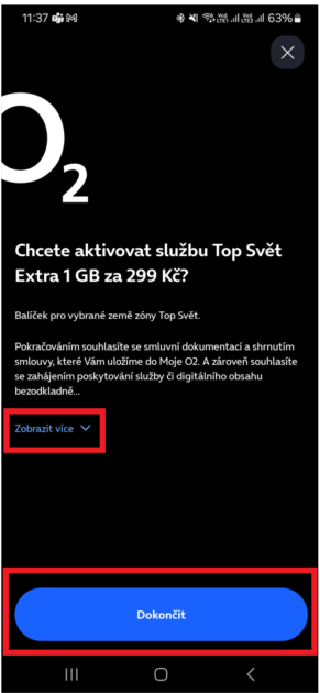 Po kliknutí na Zobrazit více se zobrazí smluvní podmínky a dokumentace. Po aktivaci se v aplikaci zobrazí informace, že byl požadavek odeslán ke schválení a poté vám přijde i potvrzovací SMS.