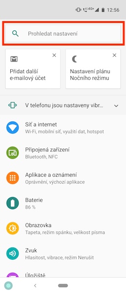 To můžete udělat buď přetažením obrazovky shora dolů a klepnutím na ikonu ozubeného kola, nebo najděte aplikaci Nastavení v menu vašeho telefonu.