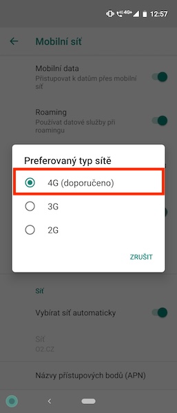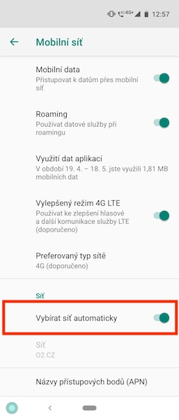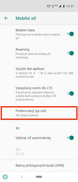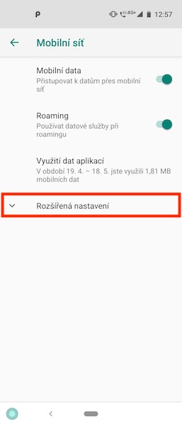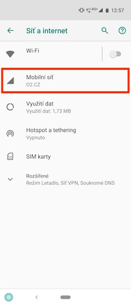 Tento krok vás rovnou zavede k přepínači 4G LTE, který se nachází v kroku číslo pět.