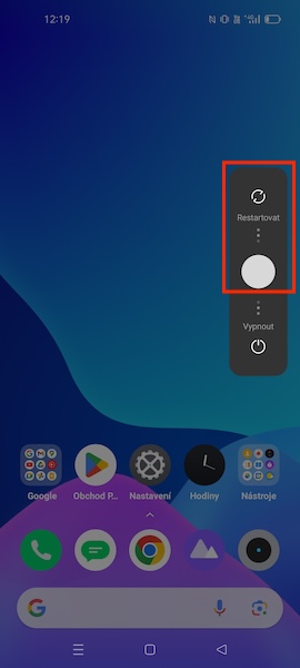 Po stisknutí a podržení tlačítek na vašem zařízení se zobrazí nabídka s nabídkou napájení.