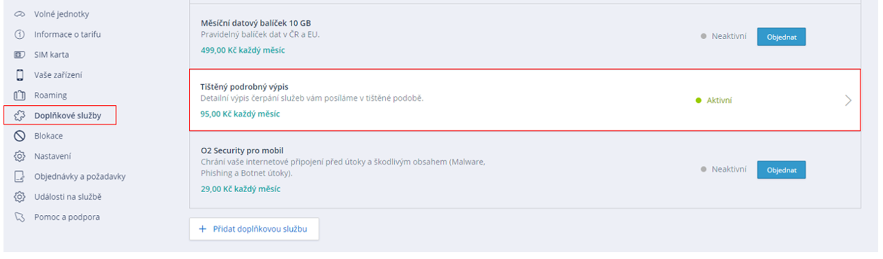 V Moje O₂ máte navíc zdarma k dispozici detailní výpis v sekci Vyúčtování.