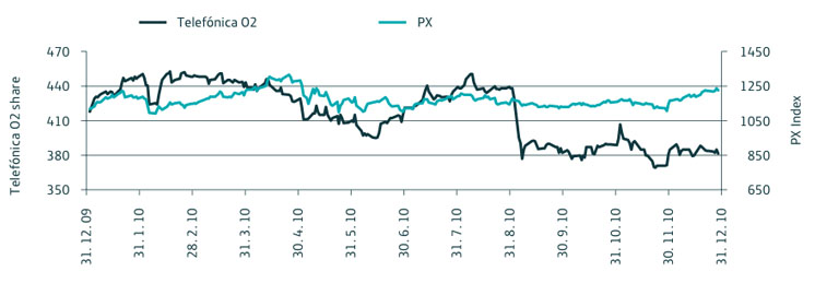 Trading in Telefónica O2 shares against the PX Index in 2010