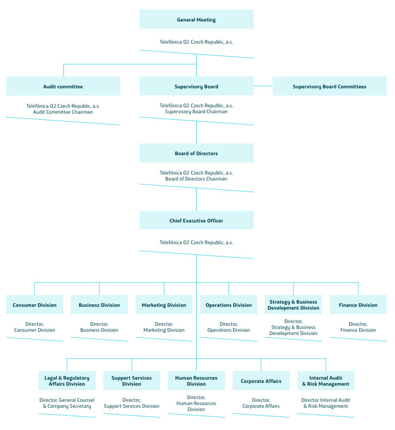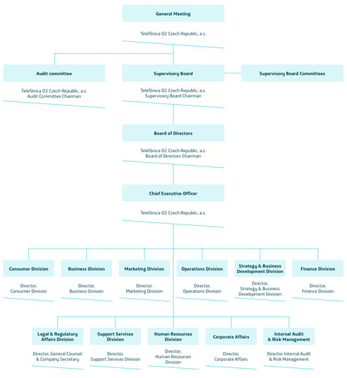 Telefónica O2 pursues continuous efficiency improvements and optimisation of its functions. The past period saw further optimisation of the organisational and governance architecture. The following changes occurred at the level of executive line organisational macrostructure during 2010: